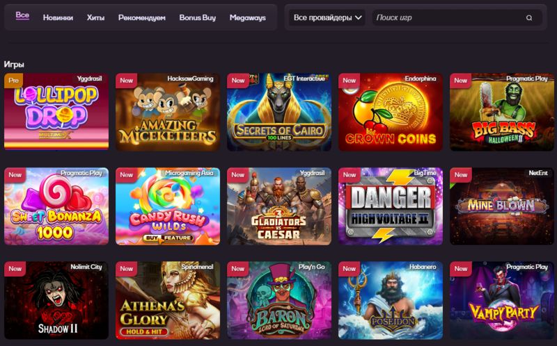 | Провайдеры игрового софта | Microgaming, Quickspin, Betsoft, Playtech, NetEnt, Pragmatic Play, Habanero, Big Time Gaming, Nolimit City, Amusnet, Tom Horn Gaming, Wazdan, Push Gaming |